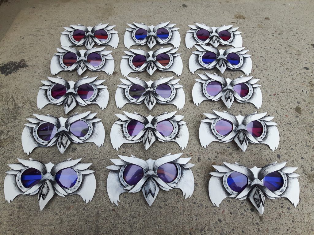 These masks were designed and created for a steam punk adaptation of Willy Wonka put on by Eastview Secondary School.