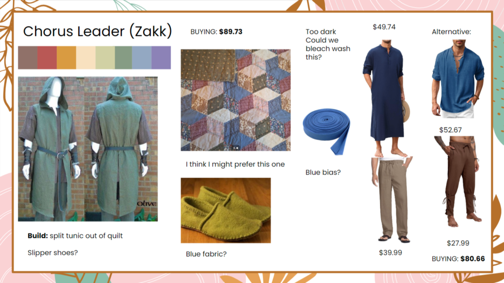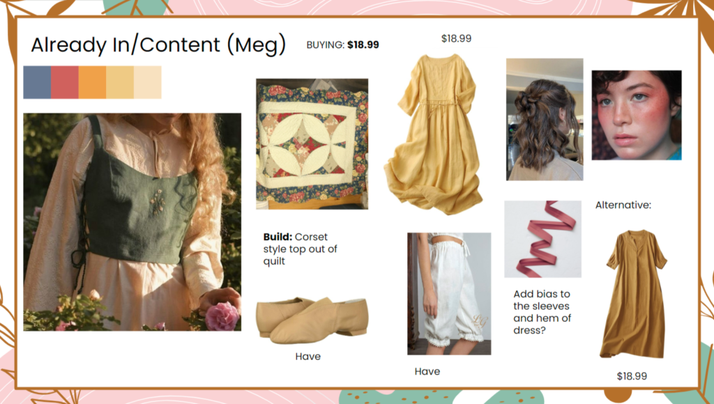From May to August of 2023 I worked as the Wardrobe Coordinator for The Foster Festival on their productions of Outlaw and Jenny’s House of Joy. In this role I aided the Costume Designer through research, organization, and construction. Below are a number of costume pieces that I helped alter and build.